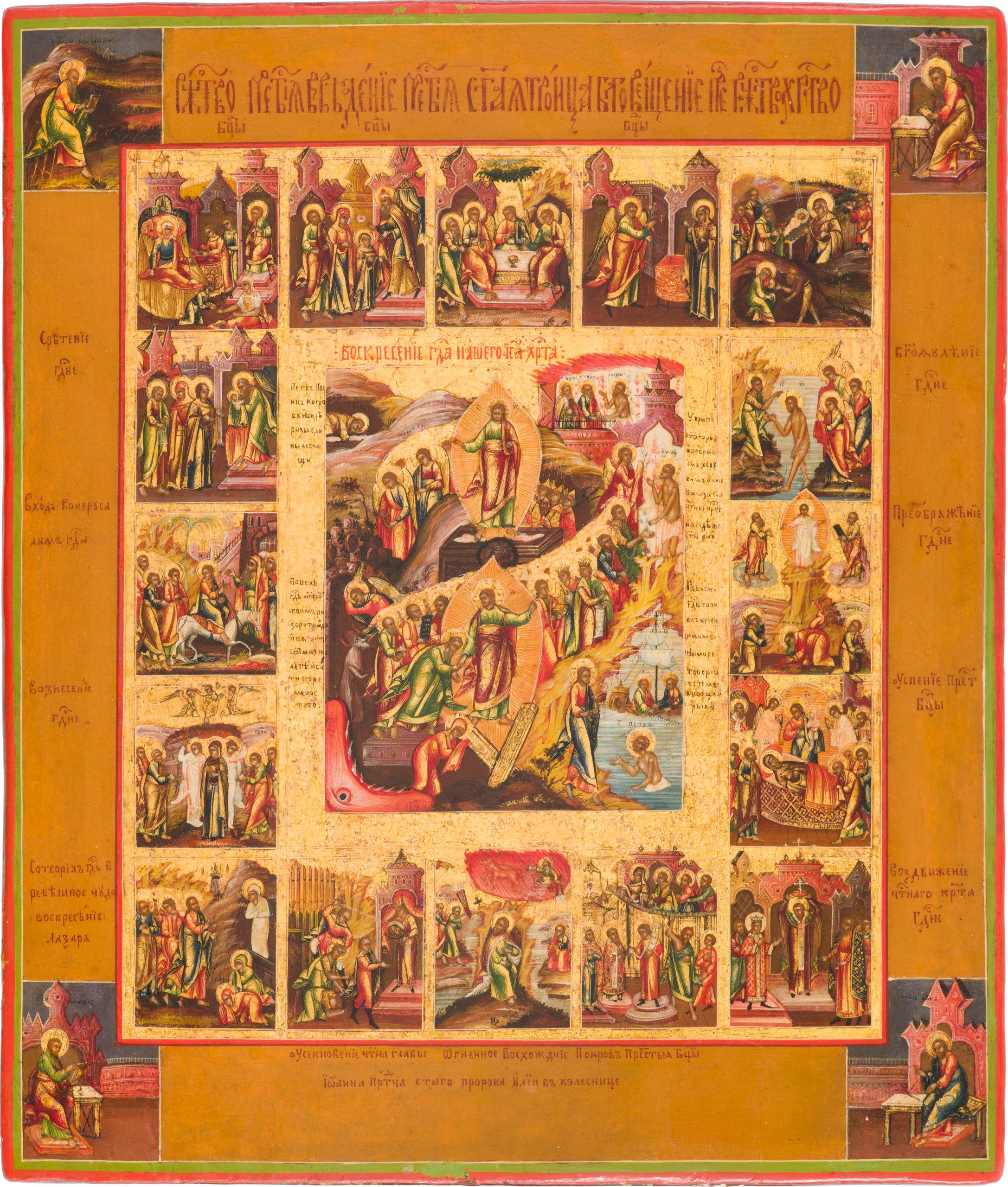 The Resurrection—the Descent into Hell, with Church Feasts in 16 Border Scenes and the Four Evangelists