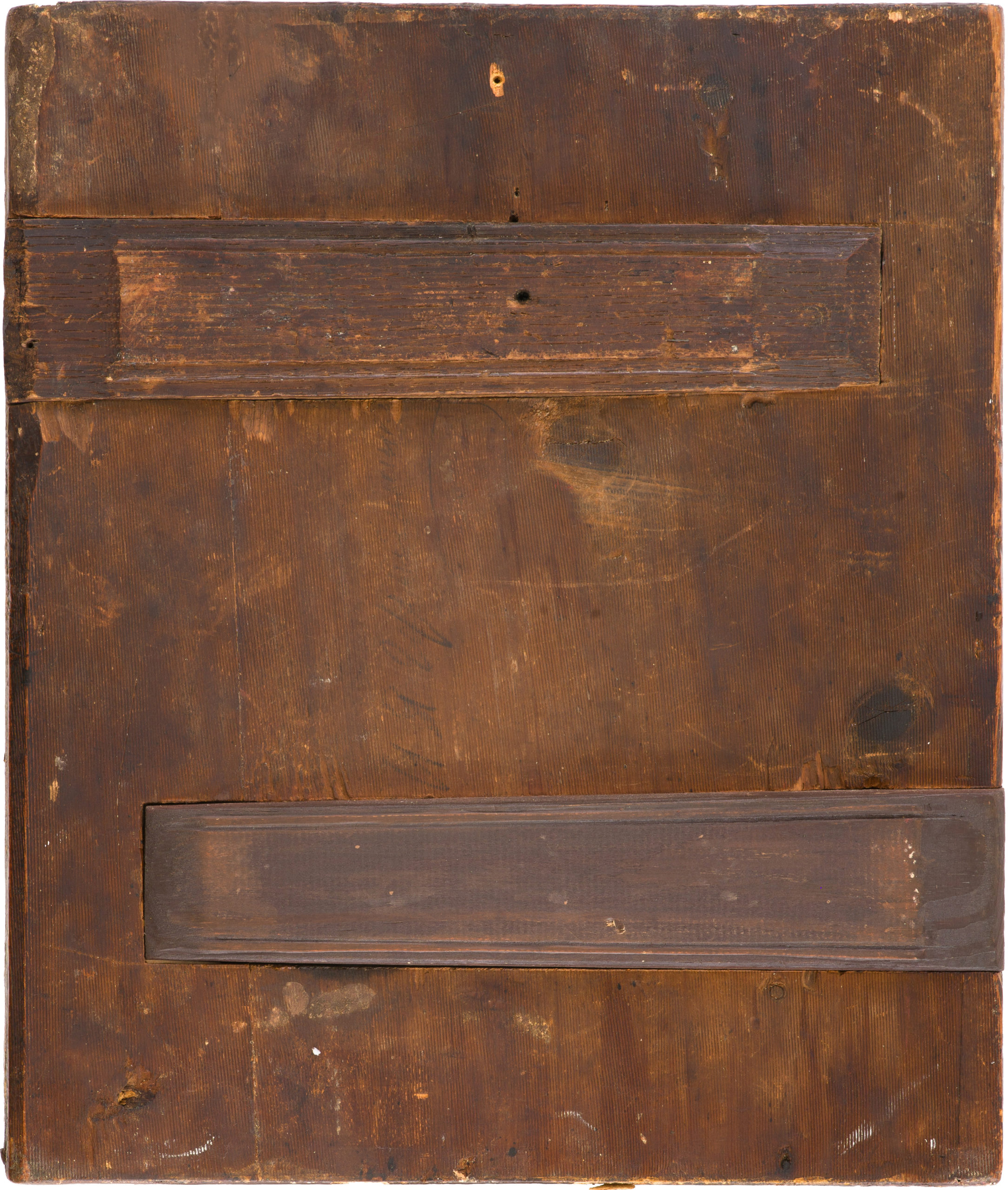 The author’s paintwork is generally well preserved. There are small chips on the ends of the panel. There are also minor scratches on the gilding, inscriptions (especially on the gold background and in the upper right border scene with the image of Saint Matthew), and paint layer.