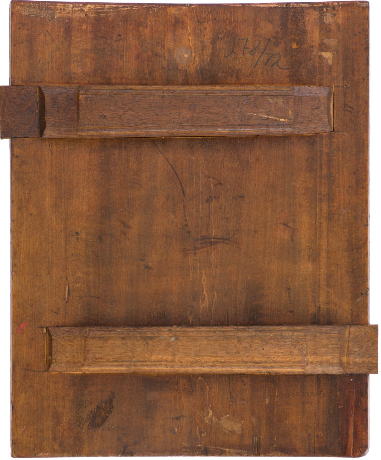 The author’s paintwork is generally well preserved. There are minor scratches to the paint layer and small chips on the ends of the panel.