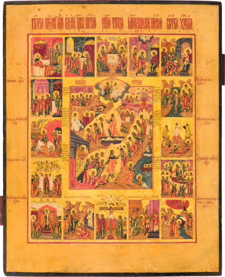 The Resurrection—the Descent into Hell, with Church Feasts in 16 Border Scenes