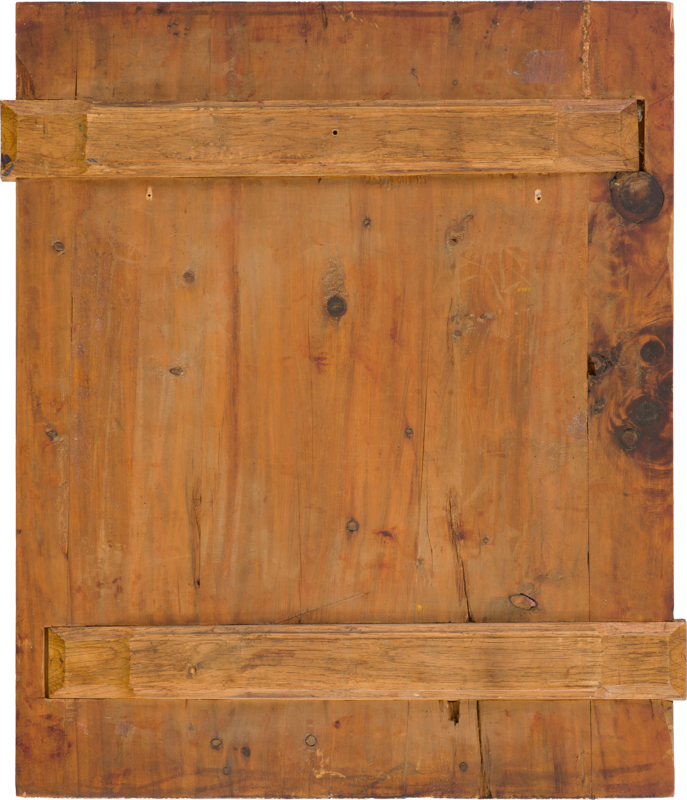 Wood (one whole panel), two incut support boards, absence of an incut centerpiece, underlying layer of canvas is probable, gesso, tempera, gilding.