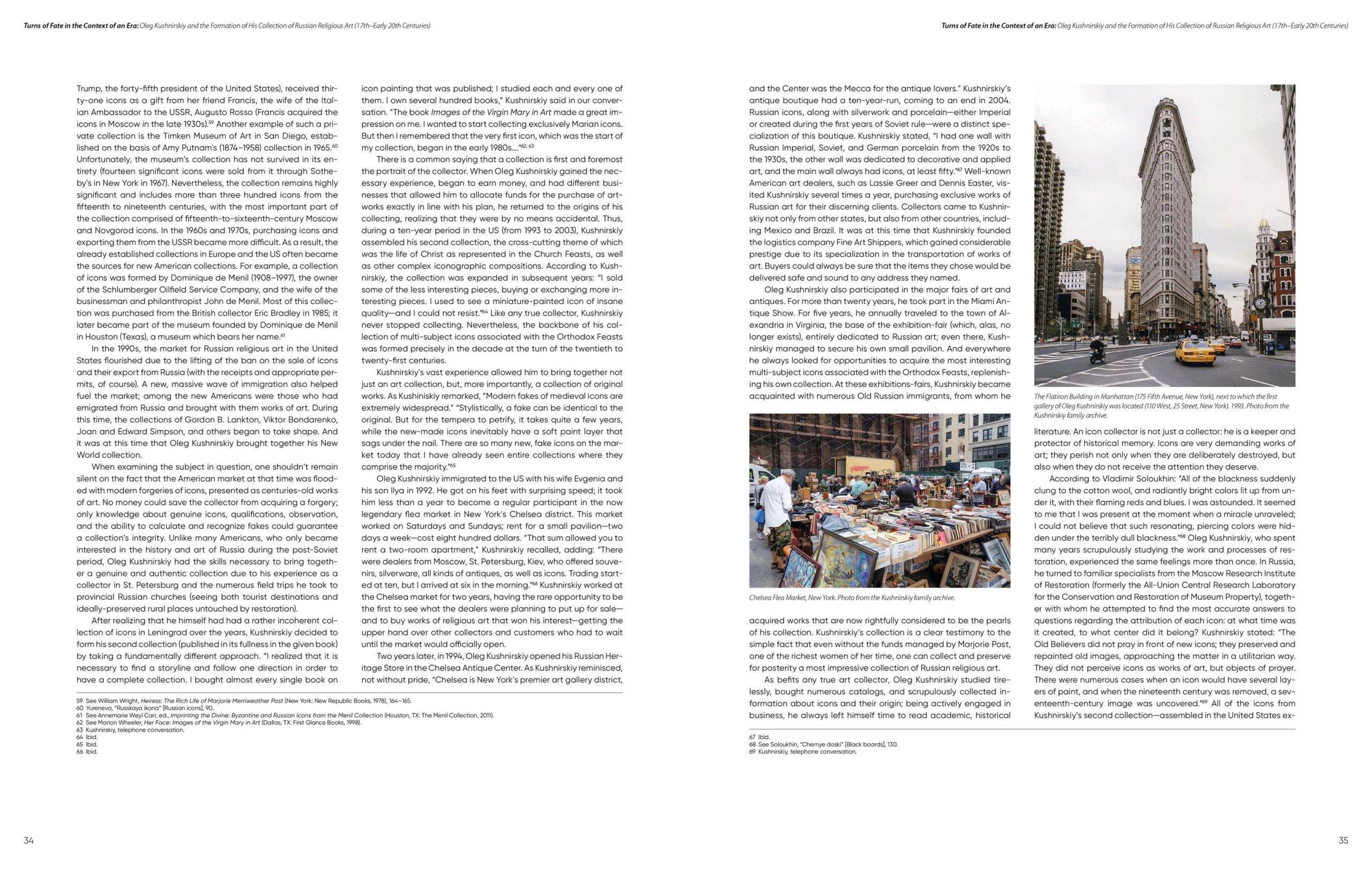 В США нет другого источника знаний о иконописи старовобрядцев, более полного и информативного, чем недавно опубликованный каталог искусства из коллекции православных икон Олега Кушнирского. Помимо богатой визуальной презентации, он содержит ценные научные комментарии Анны Иванниковой, Ирины Шалиной, Сергея Брюна, Венди Салмонд и Клемены Антоновой — всемирно признанных экспертов в области иконописи. Сочетание ярких, качественных изображений икон и описаний истории и стиля памятников делают данный каталог значимой публикацией об истории русской иконописи с полным спектром данных для изучения этой богатой культурной традиции.