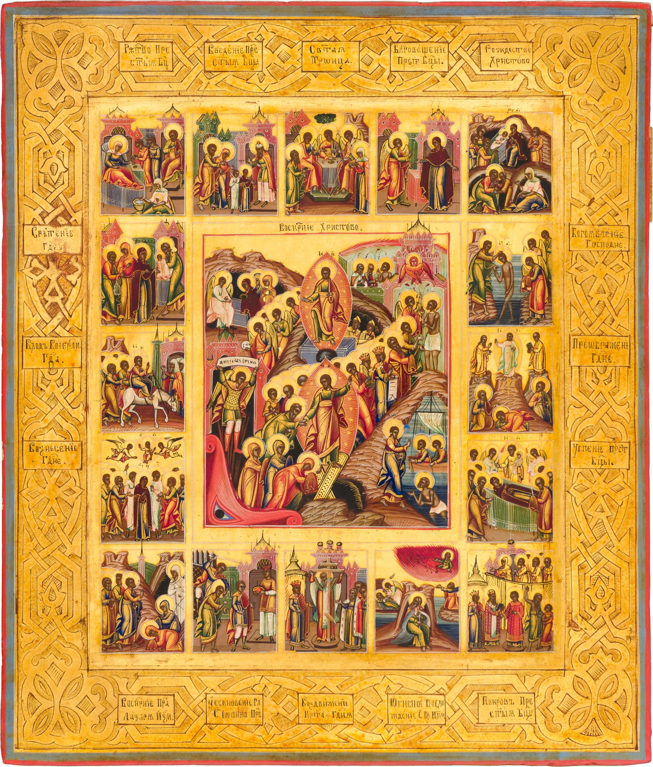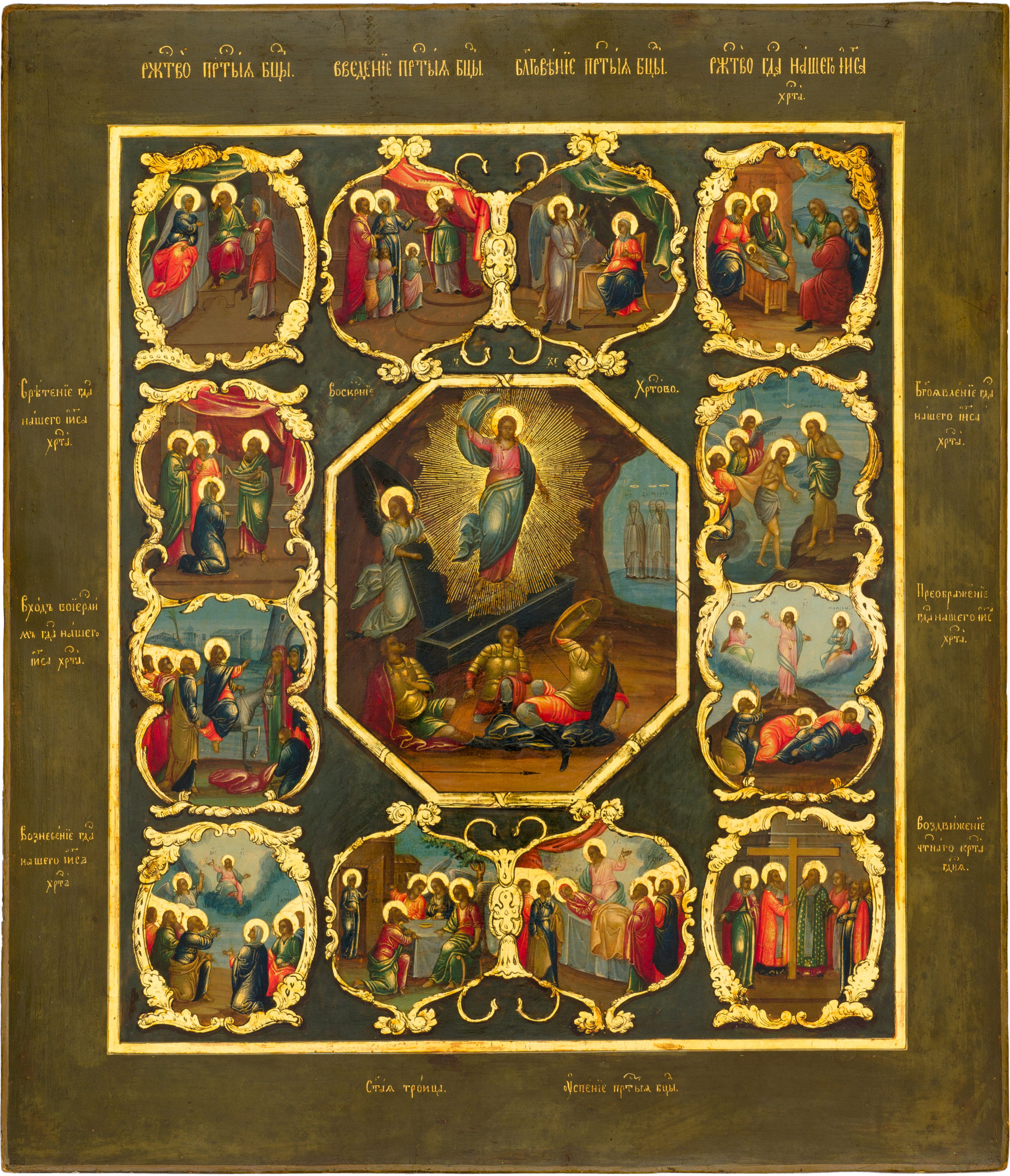 Воскресение, с праздниками в 12 клеймах. Вторая четверть XIX века. Санкт-Петербург